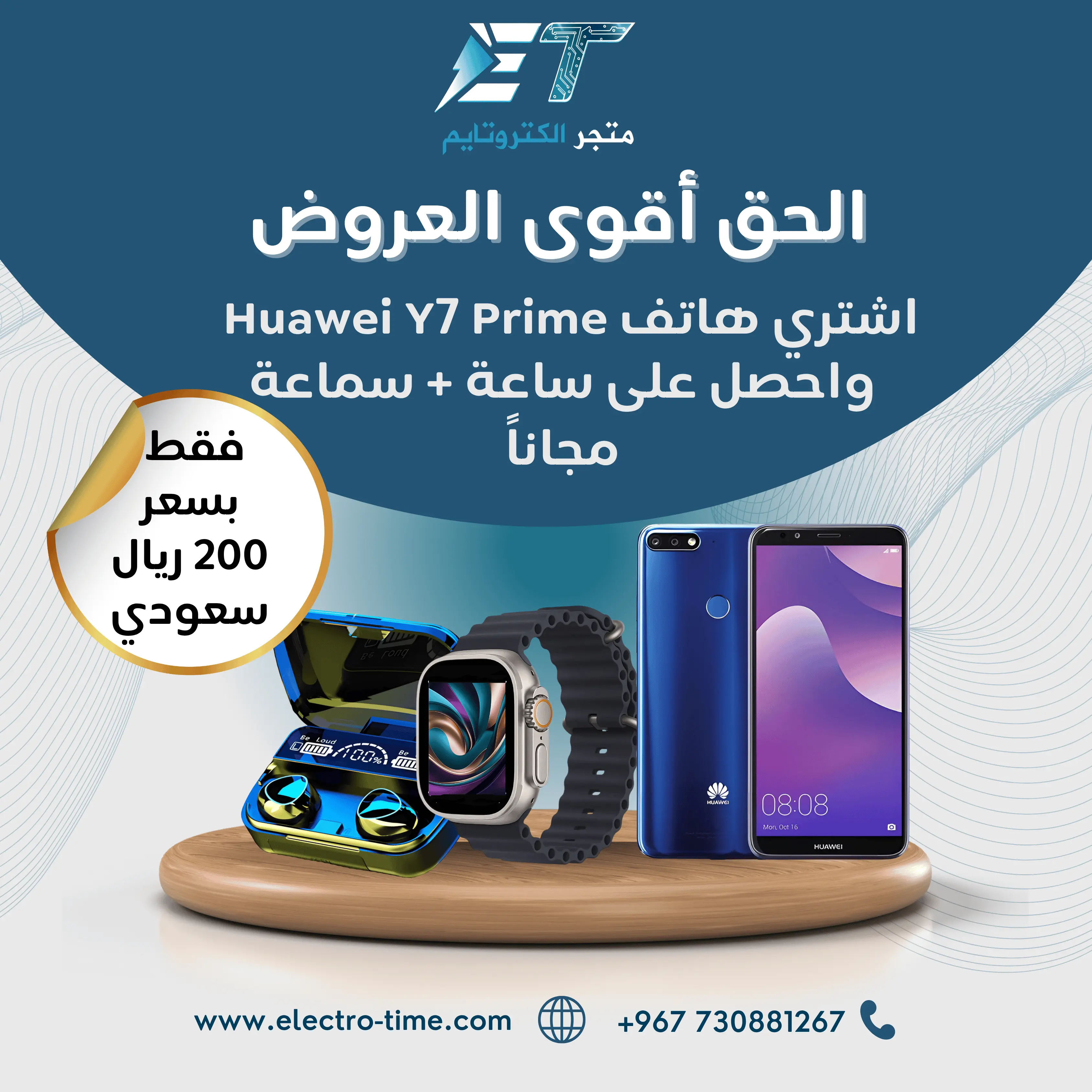 هاتف HUAWEI Y7 Prime 2018 + ساعة ذكية + سماعات لاسلكية 🎁 بسعر 200 ريال فقط!